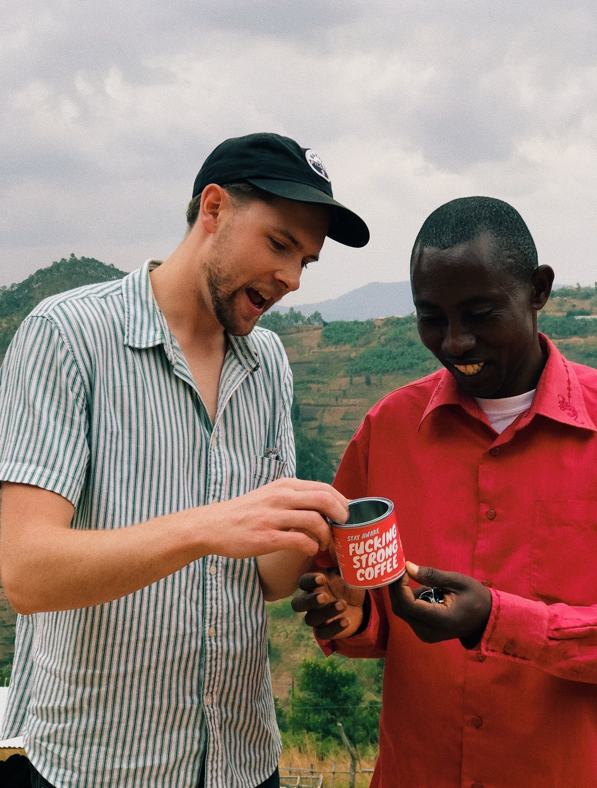 From the start, Fucking Strong Coffee was about calling bull shit on so much of what specialty coffee culture and aesthetics had become: pretentious, monotonous, self-important, inaccessible. But if we were going to talk the talk, we sure as hell had to walk the walk. So, we met a small importer called This Side Up – with just the right balance of grounded pragmatism and hippie flair – and next thing you know, Cody was off to visit our first origin partners: Twongerekawa Coko Cooperative Society in the rolling hills of northwestern Rwanda.